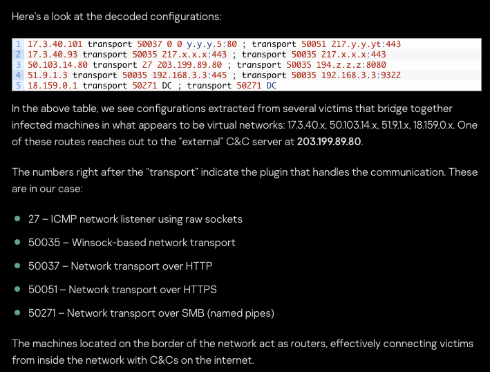 There are also instances of China using them, as seem in APT41, APT10 and FlushDaemon. Pangu Lab also made reference to mesh networks within their breakdown of the alleged NSA Bvp47 implant.